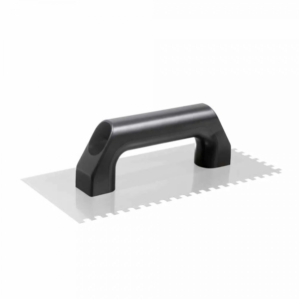 As desempenadeiras de aço dentadas são ferramentas ideais para criar sulcos e cordões para aplicação de argamassa para assentamento de revestimentos cerâmicos, madeira entre outros tipos.